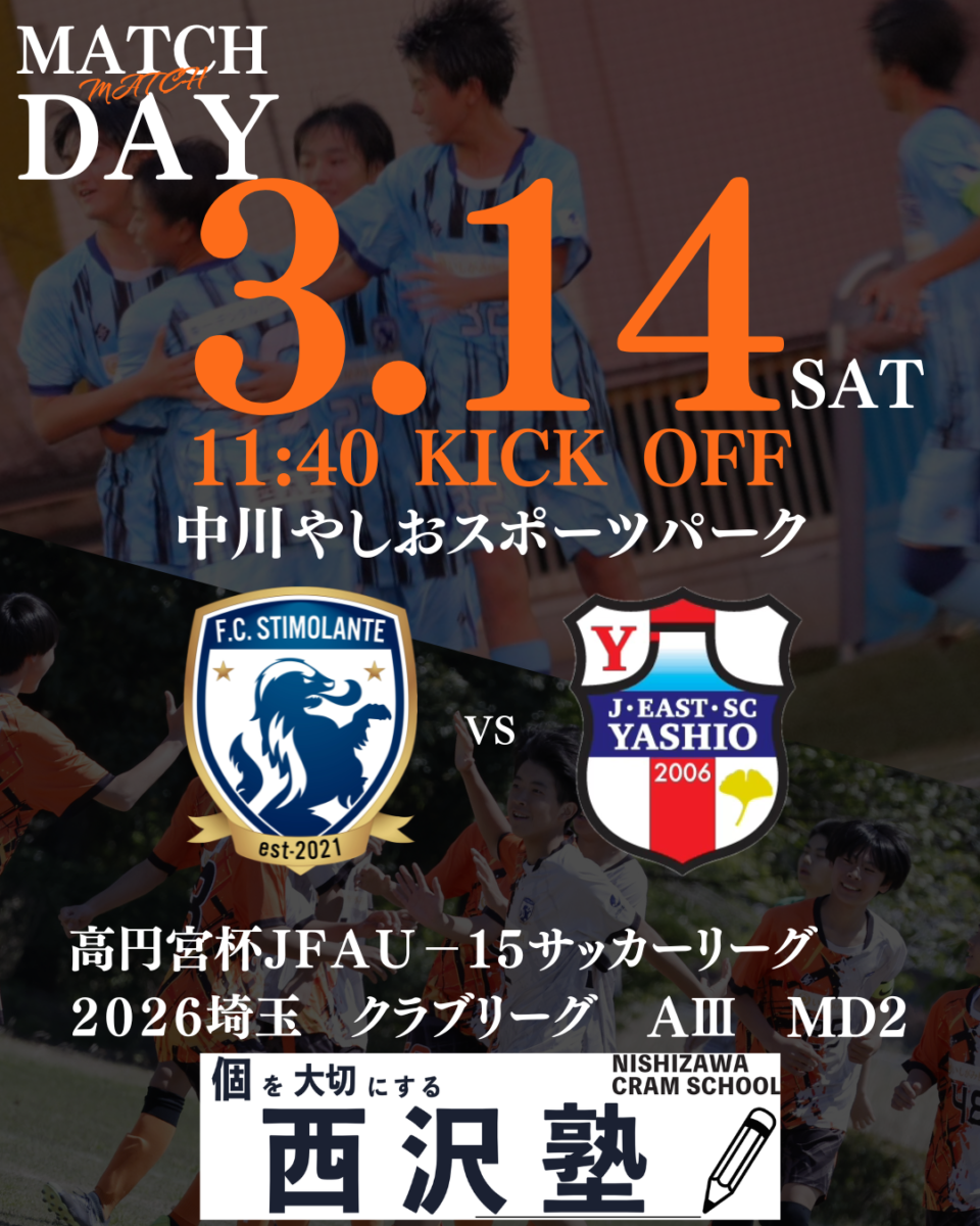 高円宮杯JFAU-15サッカーリーグ2026埼玉 クラブリーグ AⅢ第2節 FC八潮戦【MATCH PARTNER 西沢塾】 試合後のコメント
